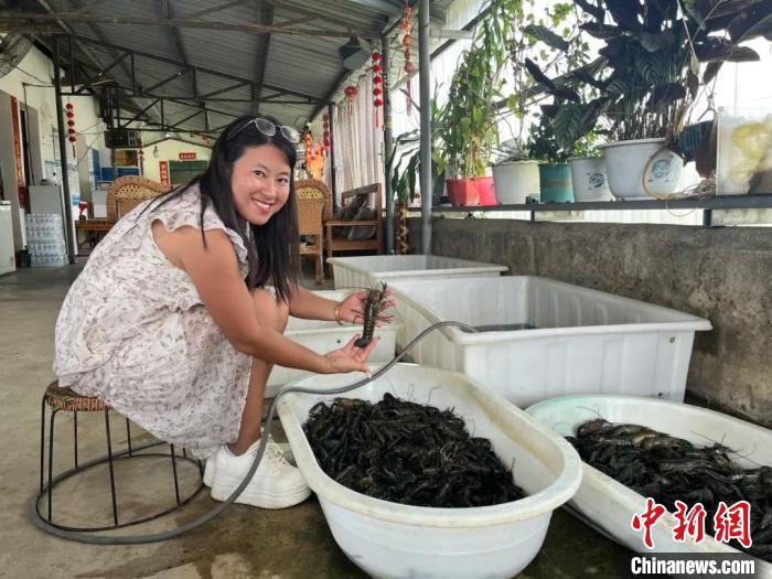 工作人员展示澳洲淡水龙虾。贺海俊摄