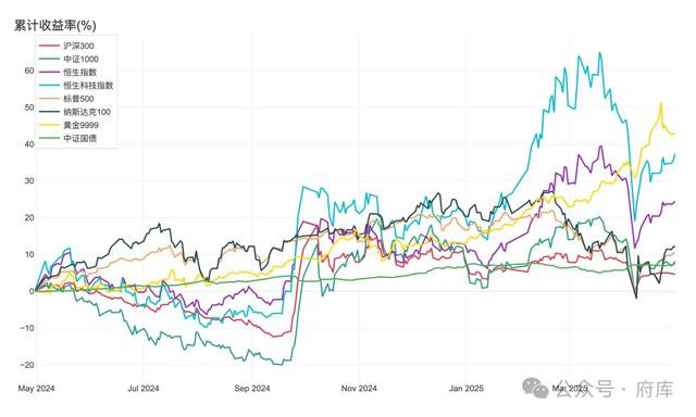 从结果来看,过去一年大类资产都收获了正收益,但过程一言难尽。去年9月底之前国内A股和港股都经历过很长一段时间的低迷,阶段性跌幅不小。而今年在国际形势变化下,各类资产在4月份又经历了一波很大幅度的下跌。